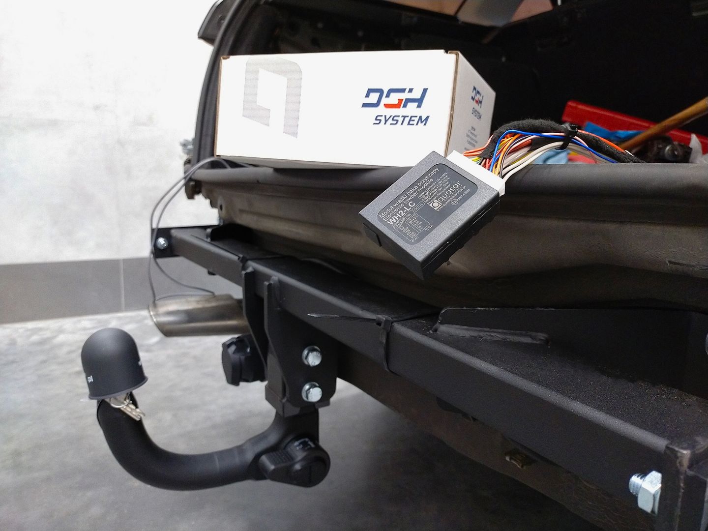 Przedstawiamy efekty po montażu haka holowniczego firmy Steinhof (kod: M-135) z kulą wypinaną pionowo oraz uniwersalnej wiązki elektrycznej z modułem firmy Quasar Electronics.