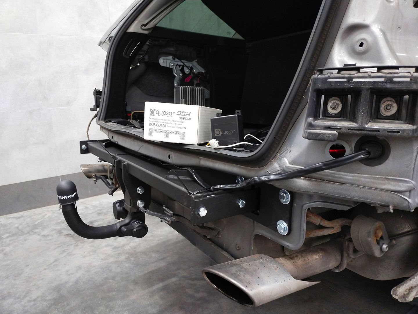 Przedstawiamy efekty po montażu haka holowniczego firmy Steinhof (kod: M-116) z kulą wypinaną pionowo oraz uniwersalnej wiązki elektrycznej z modułem firmy Quasar Electronics.
