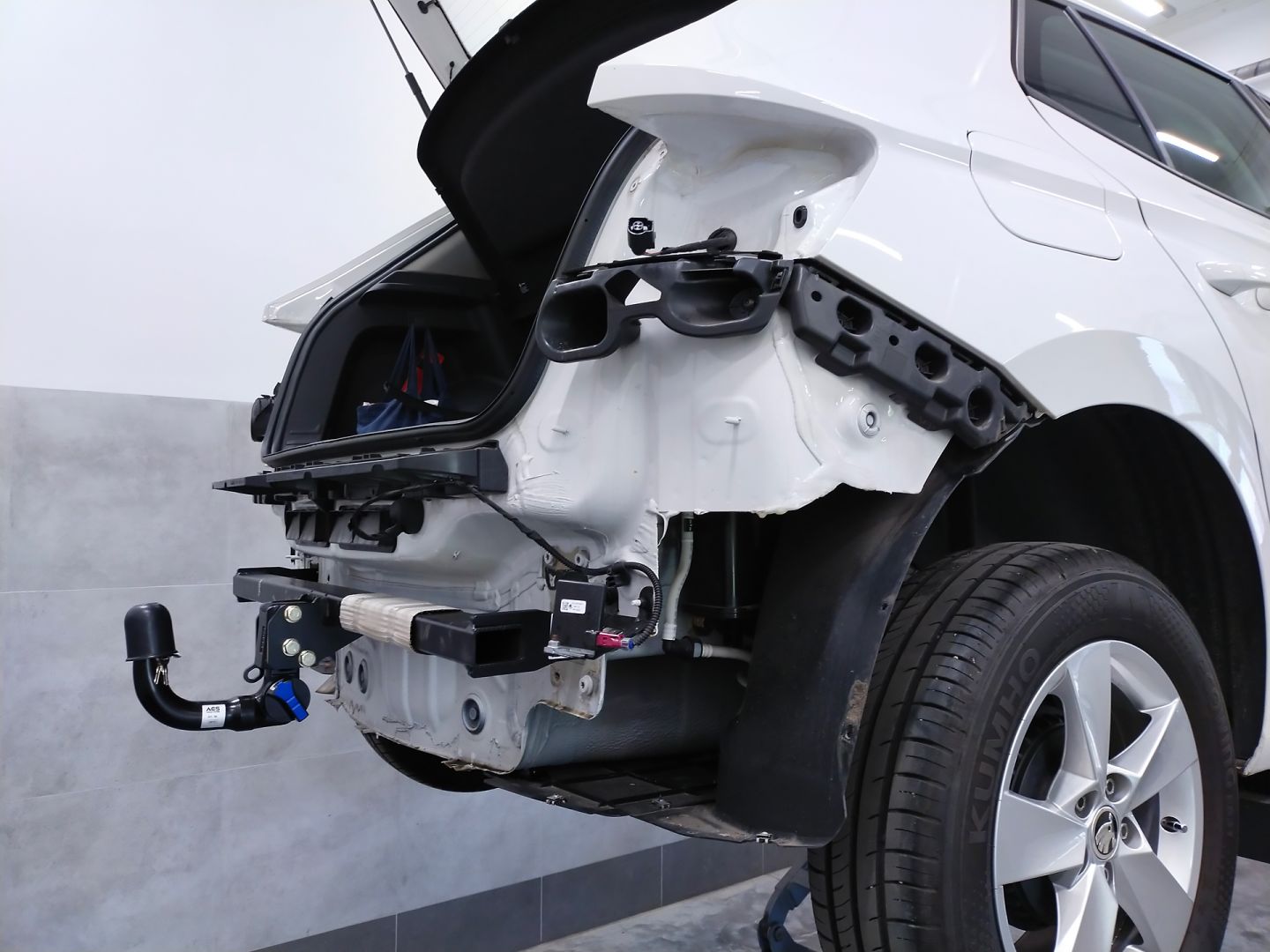 Przedstawiamy efekty po montażu haka holowniczego firmy Auto-Hak (kod: H36V) z kulą wypinaną pionowo oraz uniwersalnej wiązki elektrycznej z modułem firmy Quasar Electronics.