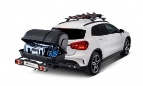 Этот продукт идеально подходит для перевозки разнообразного багажа, такого как снаряжение для дайвинга, кайтсерфинга или для зимних видов спорта. Расположение бокса позади автомобиля значительно снижает сопротивление воздуха и повышает комфорт использования по сравнению с классическим расположением на крыше автомобиля.