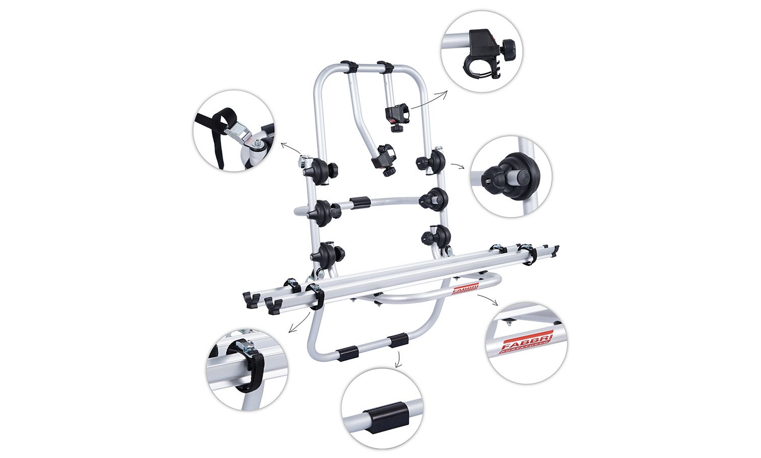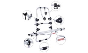 Это недорогое решение, которое позволяет путешествовать с тремя велосипедами. В основном это универсальные алюминиевые конструкции, которые подходят для различных типов кузовов автомобилей. Они легко устанавливаются на заднюю дверь автомобиля с помощью шести ремней. Легкий и компактный дизайн означает, что продукт занимает мало места в сложенном виде, что обеспечивает более удобное хранение.